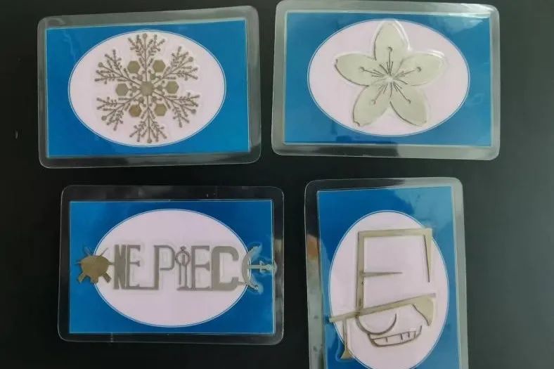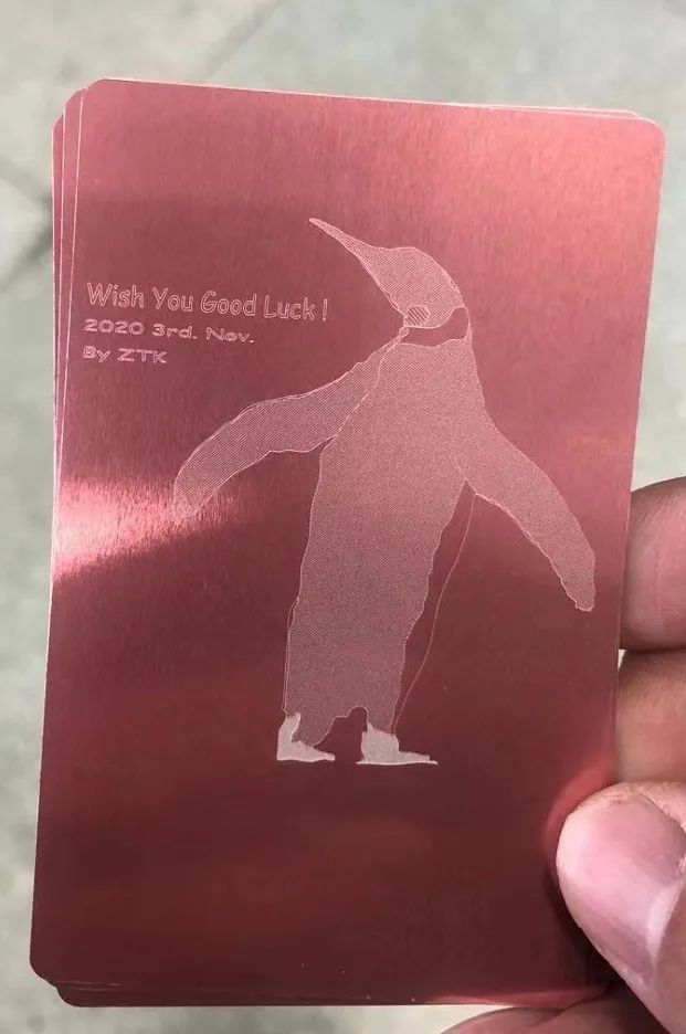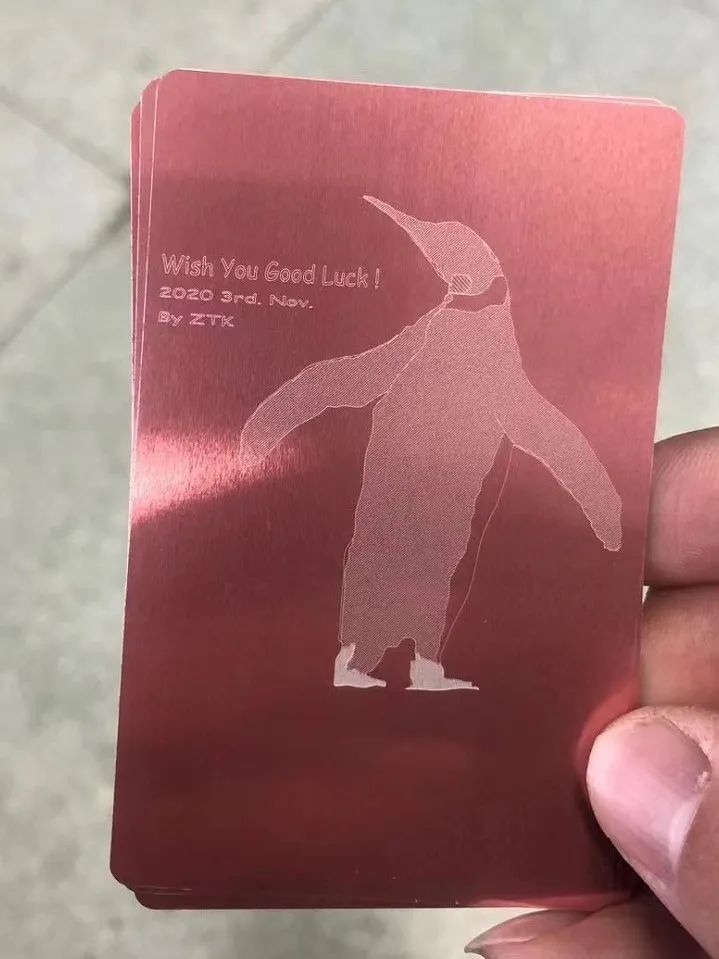 可以在任何金属表面进行激光打标!(例如金属U盘,手机的金属背板,金属书签...)加工中心提供金属小卡片(来个图),但是同学们可以自己选择喜欢的物品进行打标!