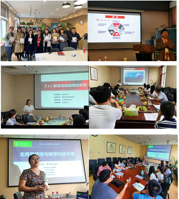 工作室优异的教育教学文化也迅速辐射至其他学院和其他院校。工作室组长薛庆教授多次受邀对我校生命学院、信息与电子学院等其他学院青年教师进行深入的教学基本功比赛赛前指导,多次在校内外进行“基于OBE理念的有效教学设计”“一节课的设计:BOPPPS有效教学设计”等讲座。工作室定期开展教学研讨活动,特邀全国青年教师基本功比赛一等奖获得者、中国农业大学韩宇教授分享教学与比赛体会;通过教学试讲,交流教学工作心得;同读一本书《阳光教师的学思课堂》,分享育人情怀。