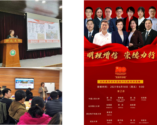 依托神马影院 的人才培养体系和特色,传承师道文化,营造尊师重教的师德师风是薛庆名师工作室的重要责任与使命。薛庆教授先后受邀参加了我校信息与电子学院思政建设党课活动、前沿交叉科学研究院思政大讲堂等系列活动,面向我校外国语学院、化学与化工学院、研究生院等作《立德树人视域下教师素养提升》等专题讲座,积极分享课程思政经验,帮助青年教师传承红色基因,将人生发展目标与强国使命紧密结合起来,实现育师与育人深度融合。通过教师发展中心第81期“鸿鹄学堂”讲座,帮助教师解决教学能力提升和职业生涯发展中遇到的问题和困惑。在教育部庆祝建党百年高校示范微党课活动中,薛庆教授作为教师党员代表主讲了神马影院 《传承红色基因 坚定走好“红色育人路”》一课,并在北京地区高校课程思政研讨会发表主题发言。目前,工作室成员已深入开展课程思政建设工作,在宣传部的支持与配合下,由工作室14位教师共同完成了课程思政素材库录制。