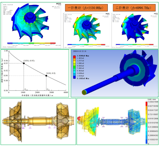 开展了增压器叶轮在复杂环境/载荷下损伤/缺陷演化的机制和规律,形成了多尺度/多场耦合的新损伤理论,构建了基于失效机制的超长寿命预测及可靠性评估方法;针对微小型叶轮机械超高速、轻载荷、大柔性、小尺寸、变工况、多激励等特点,开展了转子动力学非线性激励、跨临界转速、多参数耦合等动力学特性研究。