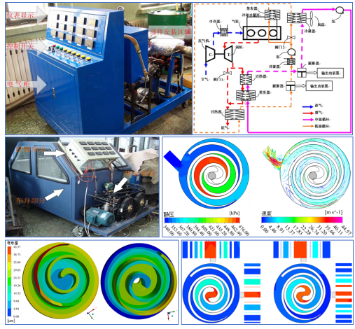 利用ORC技术开展了内燃机余热回收利用和太阳能光热发电研究;采用HFC工质和CO2工质,开展了新能源车辆热泵空调技术研究;针对新型热力循环中涡旋膨胀机开展了设计方法及性能研究。