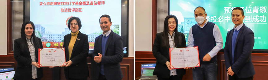 李明佳、姜玉雁作为教师代表分享了自然基金申请的经验。李明佳表示基础研究是科技创新的“总开关”,强调了自然基金申请书科学问题的凝练要服务于“四个面向”,并分享了自己在申请基金过程中的感悟和经验,叮嘱青年教师一定要早做准备,特别是要对申请书的逻辑和创新点进行反复打磨,并预祝各位青年教师在今年申请中取得满意结果。姜玉雁分享了自身申请自然基金的经验,总结了基金申报时的写作思路及论述方法,介绍了制定研究内容和创新点的注意事项,并阐述了自己作为自然基金通讯评审专家的经验体会,为青年教师们申请自然基金给予了切实中肯的建议,并预祝各位青年教师在2023年基金申请中取得佳绩。