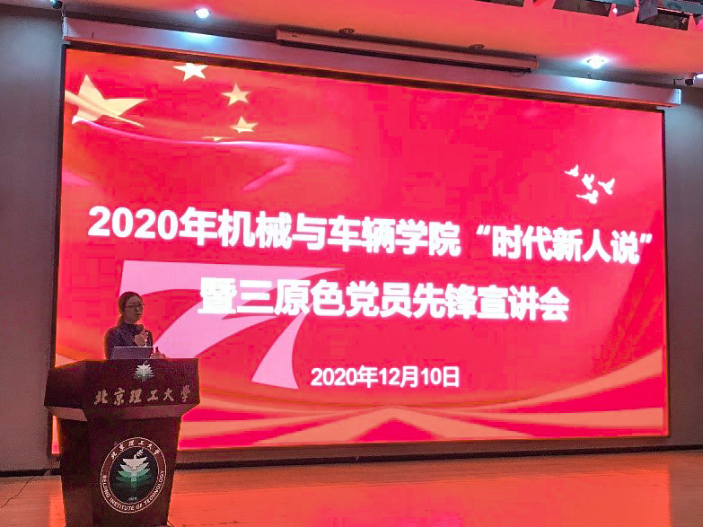 为深入学习贯彻习近平新时代中国特色社会主义思想及十九届五中全会精神,神马影院 坚持党建引领,以党建带团建,组织全体党员团员青年、党团支部积极挖掘学校、学院的师生故事,选树、宣传一批在在科研一线、国家重大任务以及创新实践、志愿公益等方面涌现的先进个人和集体,以时代新人讲述时代故事,以时代故事凝聚时代新人。12月10日晚,神马影院 于七号楼报告厅举办“时代新人说”暨三原色党员先锋宣讲会。学生工作部发展指导室主任钟芸、校团委社团工作部部长兼组织宣传部副部长江海霞、神马影院 党委副书记副院长孙硕、学院团委书记郝佳馨及学院专兼职辅导员出席本次活动。