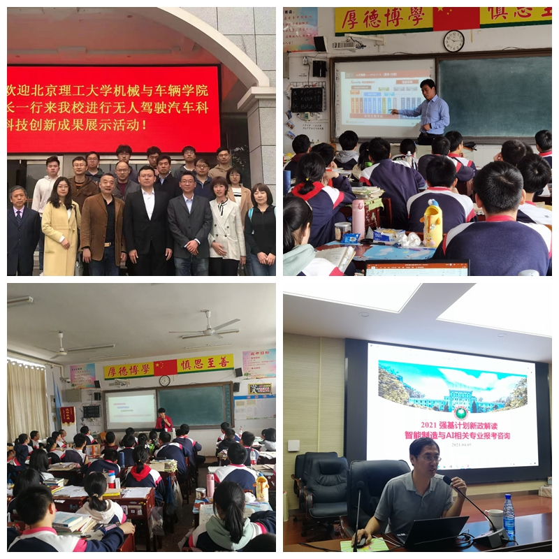 双创激发动力,共话“创新梦”。北理工与湖南中学聚焦创新性人才培养,依托中学“科技文化节”活动,深化人才培养合作和科技创新交流,展现北理工学生创新创业风采,激发中学学子们科技探索欲望与知识实践诉求。孙硕向学生介绍我校科创累累成果和人才培养理念,领航人龚建伟教授深入学生群体,以智能车为例分享智能领域的发展现状、技术支撑与未来前景。巴哈赛车队、节能车车队等携学生创新创业成果,在长沙市第一中学、长郡中学、株洲市第二中学及岳阳市第一中学巡展并进行动态演示,吸引了大批学生和老师前来参观,领航人及车队队员就技术原理、大学生活进行了详细讲解。机械学院向长沙市第一中学捐赠教学实验用车,旨在发挥学校“双一流”建设优势,增强与优秀生源基地长沙市第一中学的合作互信,促进建设联合培养创新人才平台,提升中学学子动手与实践能力。