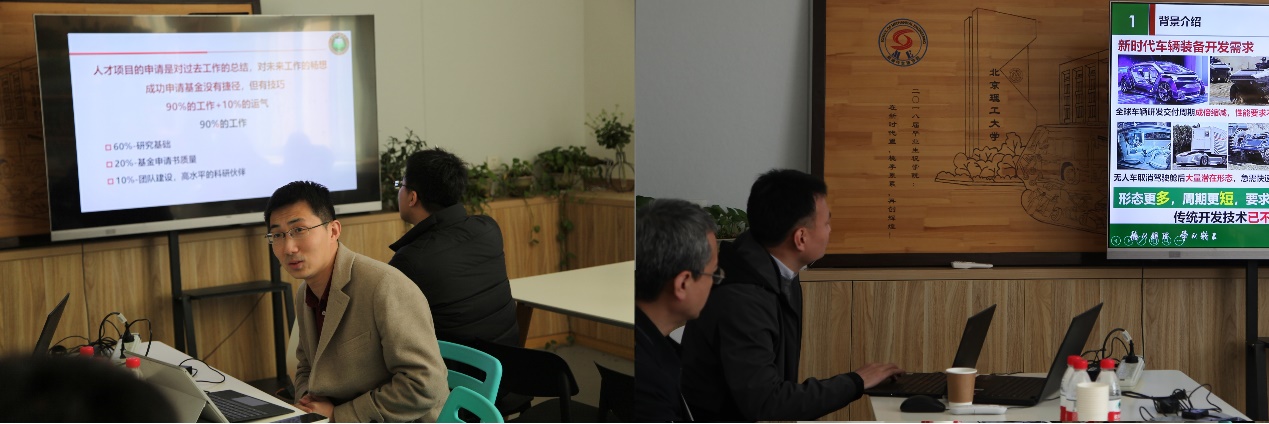 随后,光电学院青年教师代表宋维涛、机械学院青年教师代表于会龙分别就国家高层次青年人才申报、国防项目申报与各位教师进行了分享交流。参会教师认真听取了报告,并就青年人才、国家基金、国防项目的申报经验进行了充分的交流和研讨。
