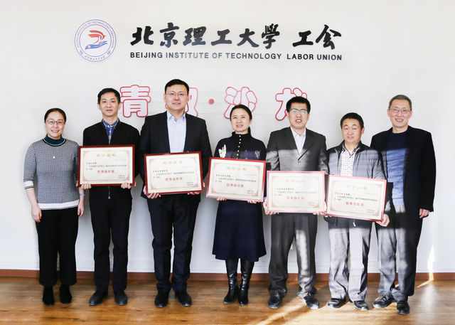 北京教育工会常务副主席张洋和校工会常务副主席高伟涛颁发优秀组织奖