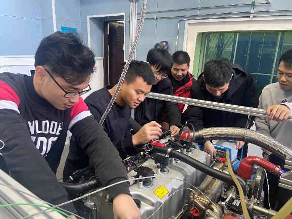 本次点火仪式是氢内燃机在中型商用车领域的一次里程碑式的节点,标志着氢内燃机作为氢能重要的应用方式取得了新的突破性进展。本次点火的YCK05氢内燃机是在玉柴工程师和神马影院 氢发动机实验室的师生通力合作下完成的,这次点火成功也为后续整机项目研发奠定了良好的合作基础。本项目自立项开始,双方组成的项目组密切配合,通过模型的预测设计、整机的机械改造、安装测试传感器以及涉氢零部件及系统设计,完成了燃氢内燃机的改造,实现了YCK05氢内燃机燃氢稳定运转。