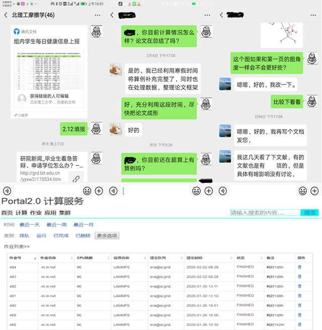 电动车辆国家工程实验室的老师们深知学生们的困惑,第一时间就组织对所有学生本人和家长进行新冠肺炎情况摸底调查。深夜之中,老师们还在思考学生们的研究课题,为学生提供创新的想法;肺炎肆虐,老师们决心从本学科专业出发,为防控疫情提供科技支撑;放眼未来,老师们坚信我们一定可以打赢这场硬仗,而现在必须思考未来的发展方向。同学们深受鼓舞,纵使心生胆怯,看到老师的鼓励也会学会勇敢。每一次讨论都积极踊跃,同学们的反馈既振奋又有趣:“谢谢老师的指导,我认为自动化的物流配送一定会是未来!”,“在家里憋坏了,和老师同学们一起探讨问题才找回了信心!”……疫情当前,北理师生勇担重任,居家隔离战病毒,“闭门造车”创一流!