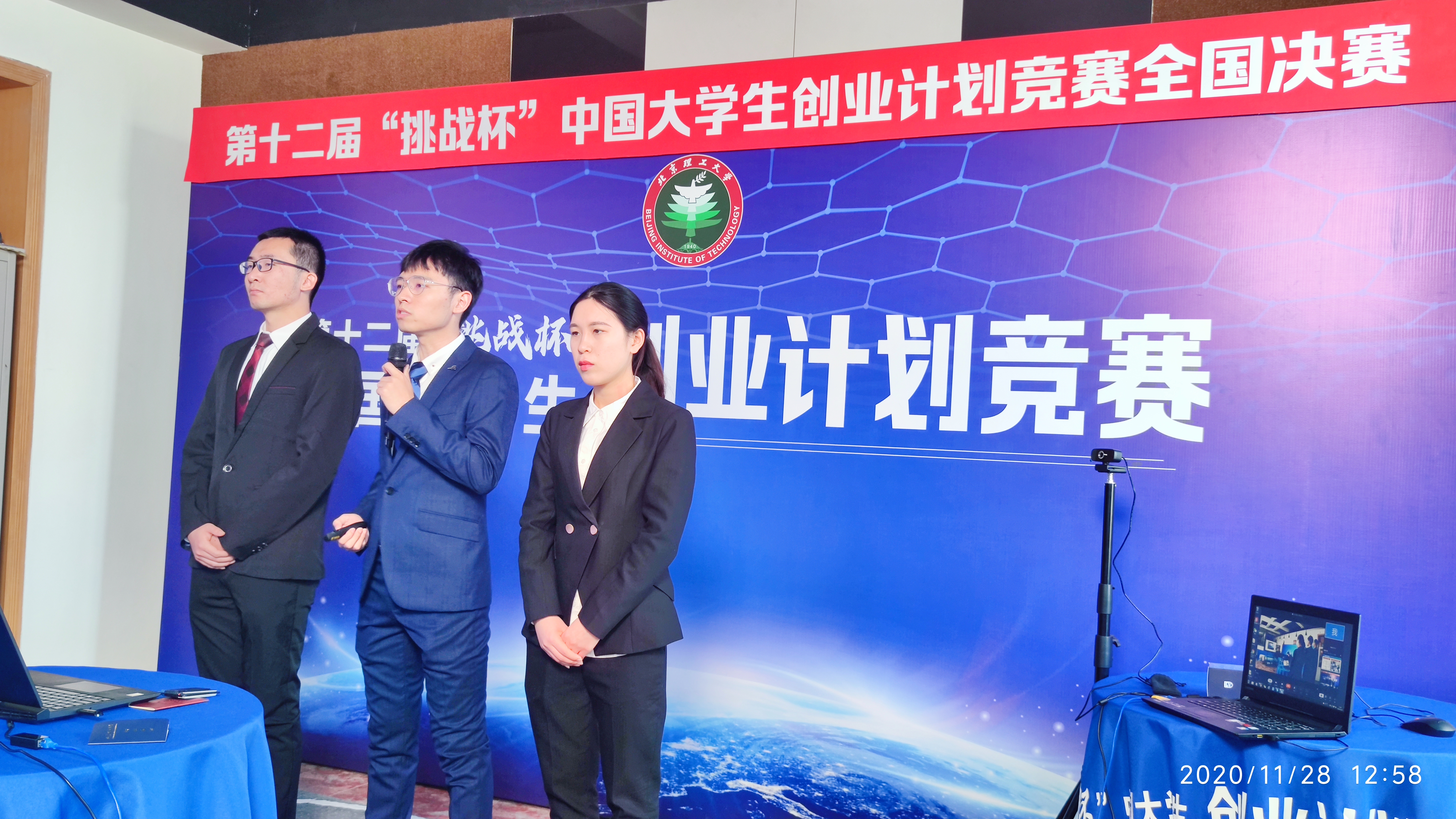 挑战杯大赛引导和激励了一批批青年通过广泛的社会实践、深刻的社会观察,不断增强对国情社情的了解,激发创新精神,培育创业意识,提升社会化能力。为了更好地筹备此次比赛,学院党委批准成立挑战杯备赛临时党支部,学院创新创业中心邀请专业导师对参赛项目进行一对一的精心指导,开展挑战杯”云培训“28次,专题会议指导11次,对项目选题、项目进度、技术研发和团队合作进行全流程的帮助与支撑,王罡、周梦莹、阮本帅、贾良跃参赛团队核心骨干备赛历时一年,全体成员坚韧不拔,刻苦努力,积极拼搏,最终取得了优秀的成绩。