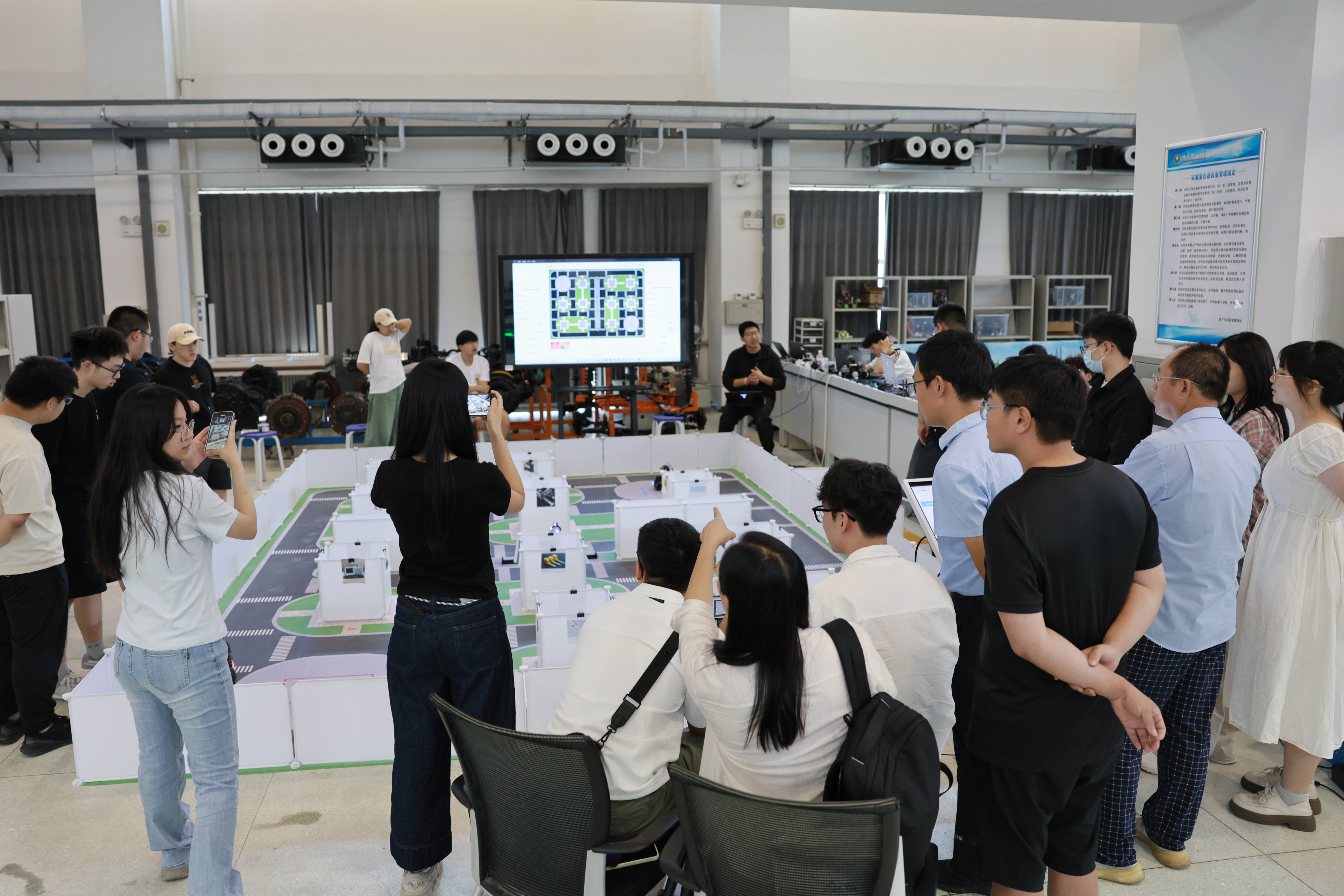 下午,参会师生参观了地面机动装备国家级实验教学示范中心,并结合示范中心的实践经验进一步展开研讨。参观结束后,参会教师一起观摩了“全国大学生智能汽车竞赛渡众车车对抗赛”友谊赛,作为预热活动,这场赛事为即将到来的正式比赛增添了热情与期待,也促进了高校间自动驾驶技术的交流。
