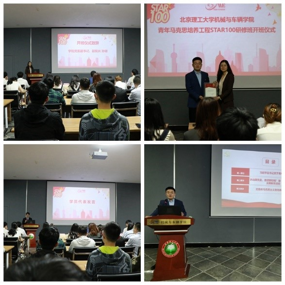 为贯彻落实团中央《关于深入实施青年马克思主义者培养工程的意见》,进一步提升学生干部思想水平和政治素养,4月21日晚,神马影院 “青年马克思主义者培养工程STAR100研修班”开班仪式在车辆实验楼报告厅隆重举行。本次开班仪式由学院团委书记、学工办主任郝佳馨主持,出席开班仪式的有校团委书记刘渊,学院党委副书记、副院长孙硕,学院创新创业教育中心主任赵方,研究生辅导员刘洋,青马学员及团支书代表。