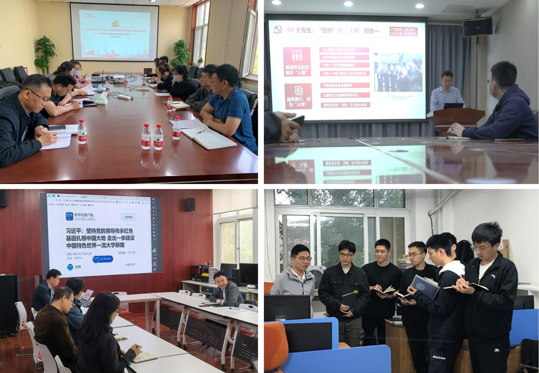 学院各基层师生党支部通过领学、联学、集中学习和个人自学等多种形式深入学习了习近平总书记在中国人民大学考察时的重要讲话精神。学院办公室党支部与检测与控制研究所教师党支部开展“联学联讲”活动,充分发挥支部共建优势,深化学习教育效果;振动与噪声控制研究所教师党支部开展专题党课,营造浓厚学习氛围,推进学习教育走深走实;工业与智能系统工程研究所教师党支部通过“个人自学、集中领学、讨论促学”模式,助力教师学深悟透、入脑入心;数字化制造所研究生党支部以实验室为单位成立多个理论学习小组,认真学习习近平总书记在中国人民大学考察时的重要讲话精神。其他教工和学生党支部也根据各自的教学科研禀赋和特色活动,通过多种形式开展了丰富多彩的学习活动。